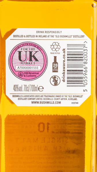 Bushmills 10 Year Old Single Malt Irish Whiskey