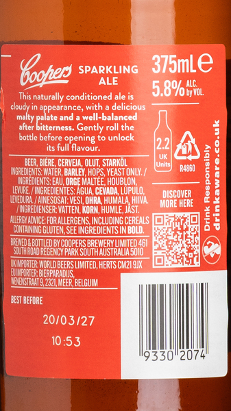 Red Label Sparkling is the bigger, bolder, beefed-up sibling to Green Label Original. It's got richer malts, riper fruitiness and that trademark bottle-conditioned haze for extra depth, plus a yeasty edge and a decent kick of hop bitterness - though not too much to frighten the horses. Roll the bottle if you're after the full cloudy hit, or pour it gently for a cleaner finish. However you take it, it's a proper slice of traditional Aussie brewing.