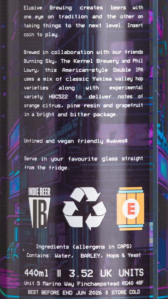 Elusive Brewing, tucked away in Finchampstead, is where traditional brewing know-how meets thoughtful innovation. Founded in the mid-2010s by homebrew hero Andy Parker, it's a small operation with a big reputation. Andy turned his passion into award-winning beers that balance classic styles with a modern edge. With an emphasis on precision and creativity, Elusive's brews are crafted to surprise seasoned beer lovers - familiar flavours, but often with something unexpected in the mix.