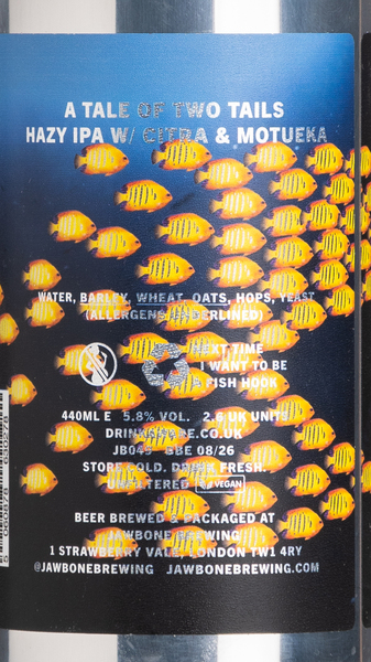 The chunkier partner in Jawbone's fishy duo of hazy IPAs succeeds in combining real substance with easy-drinking appeal. Citra and Motueka bring along ripe mango and zesty lime and the creamy, full body gives it a certain presence. Lovely tropical flavours, an easy-going bitterness and silkily smooth and mouthfilling - not too shabby at all.