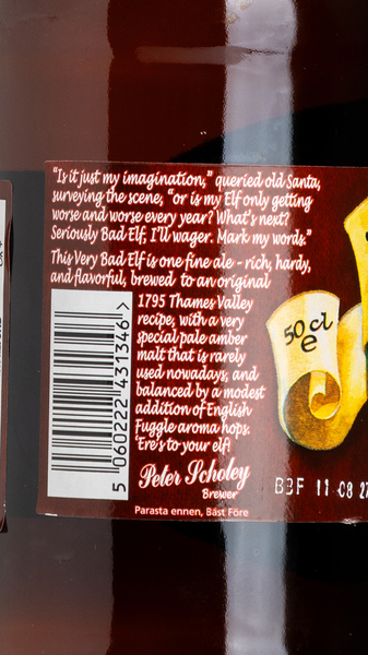 Don't let the pale, amber colour fool you: Very Bad Elf is a rich, robust winter beer. Festive brews like this are usually a bit darker, but the chunky ABV and nutty, warming puts it all into context. It's brewed to an ancient recipe, using a specially recreated pale amber malt that lays on butterscotch, nuts, and biscuits. And classic Fuggles hops give just a tadge of bitterness. Full-bodied, thoroughly warming and perfectly suited to the colder months.