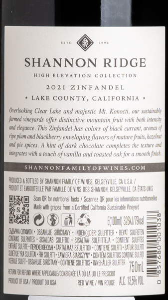 Shannon Ridge Zinfandel, Lake County 2021